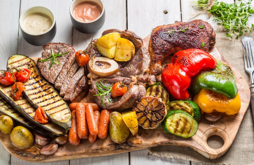 Selection of seasonal vegetables basted in olive oil and black pepper
